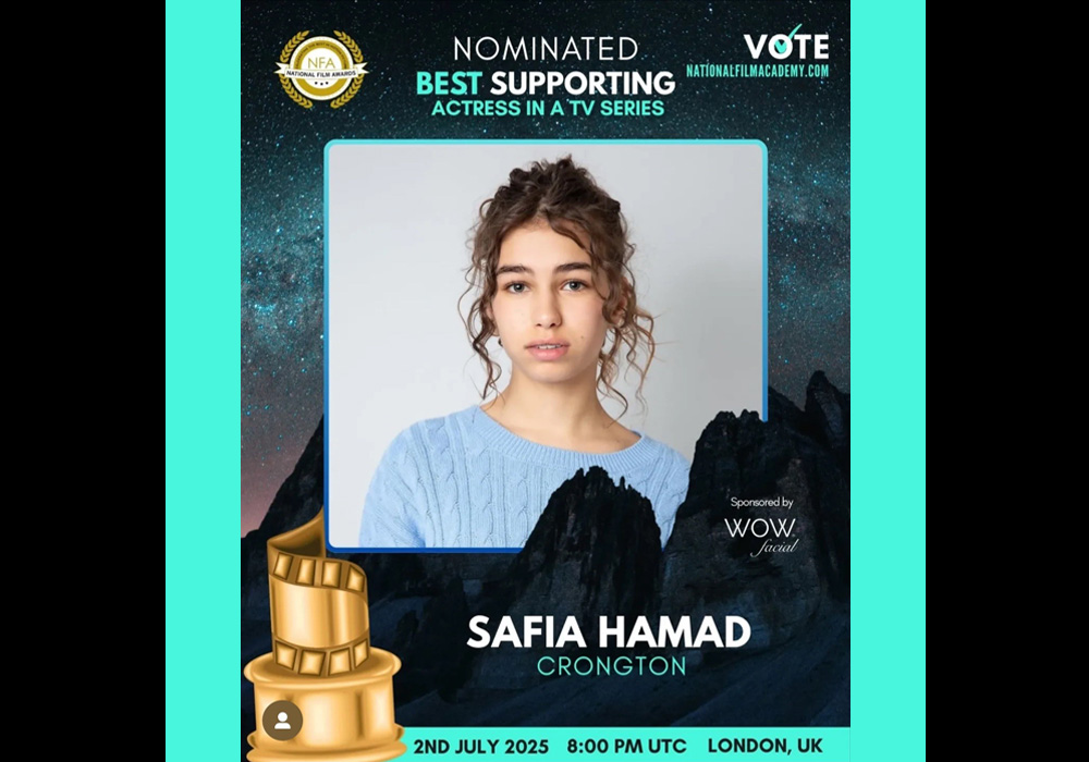 Congratulations to Safia who has been nominated for a National Film Academy award for her role as ‘Saira’ in the BBC’s ‘Crongton’.