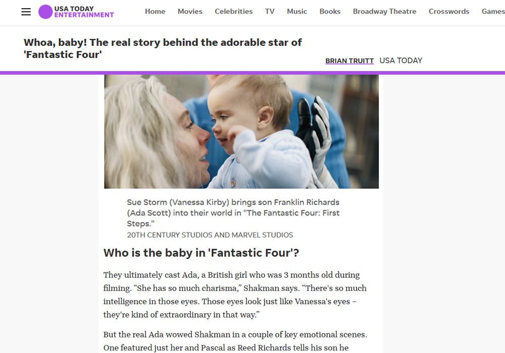 So proud of our Ada who stars as Baby Franklin in the new Marvel Fantastic Four film ‘First Steps’ now in cinemas. You can read all about her film debut here!